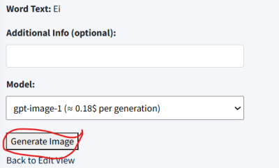 Um ein Bild für das Wort zu erstellen, wird in der Übersicht auf „Generate Image“ geklickt: