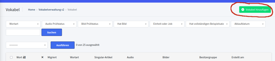 - Audios aller Vokabeln und Beispielsätze sind geprüft (Prüfstatus „confirmed“); außer Audio schlecht, dann Status gelassen