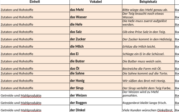 - Die Vokabelliste mit entsprechenden Beispielsätzen wurden als Tabelle exportiert (hier abgelegt)