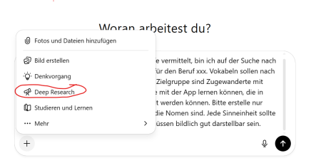 - Der Prompt wird bei ChatGPT auf der „Deep Research“- Funktion eingegeben.
